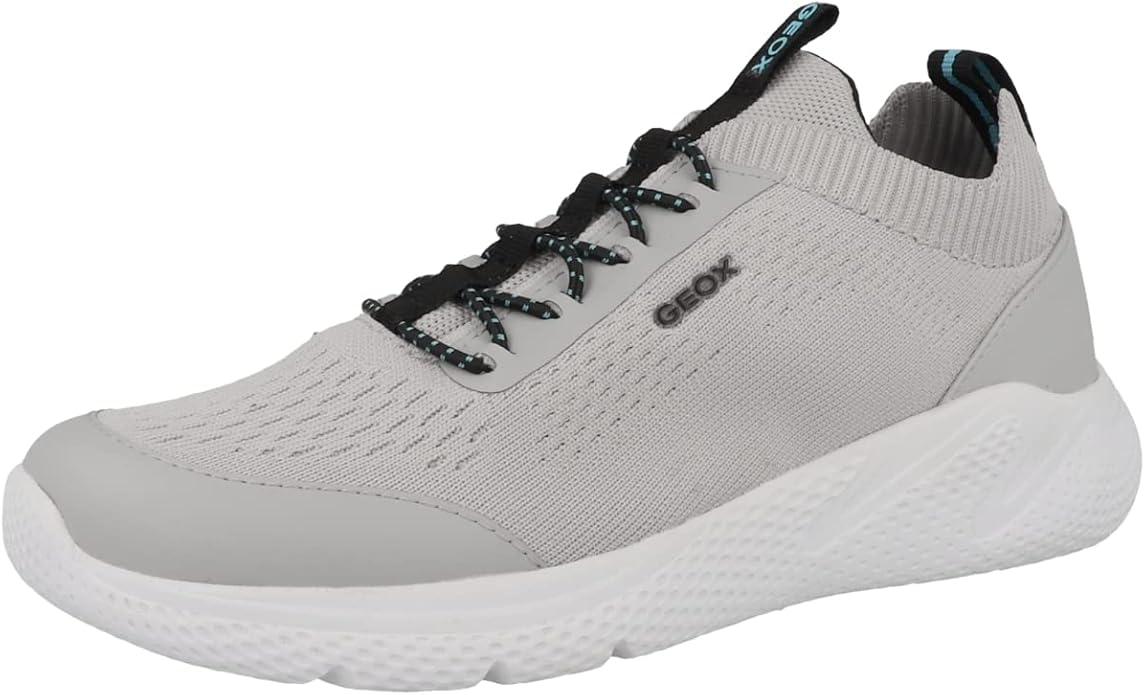 Lightweight comfortable Junior sneaker for casual contemporary looks. With an outstandingly lightweight yet sturdy sole, the Sprintye sneaker is the perfect partner for everyday styling. Set on a stylish upper white a knitted-effect fabric, it has plenty of versatile styling potential and offers all of Geox's signature comfort and breathability. Its casual contemporary aesthetic makes it the perfect complement to leisuretime outfits.