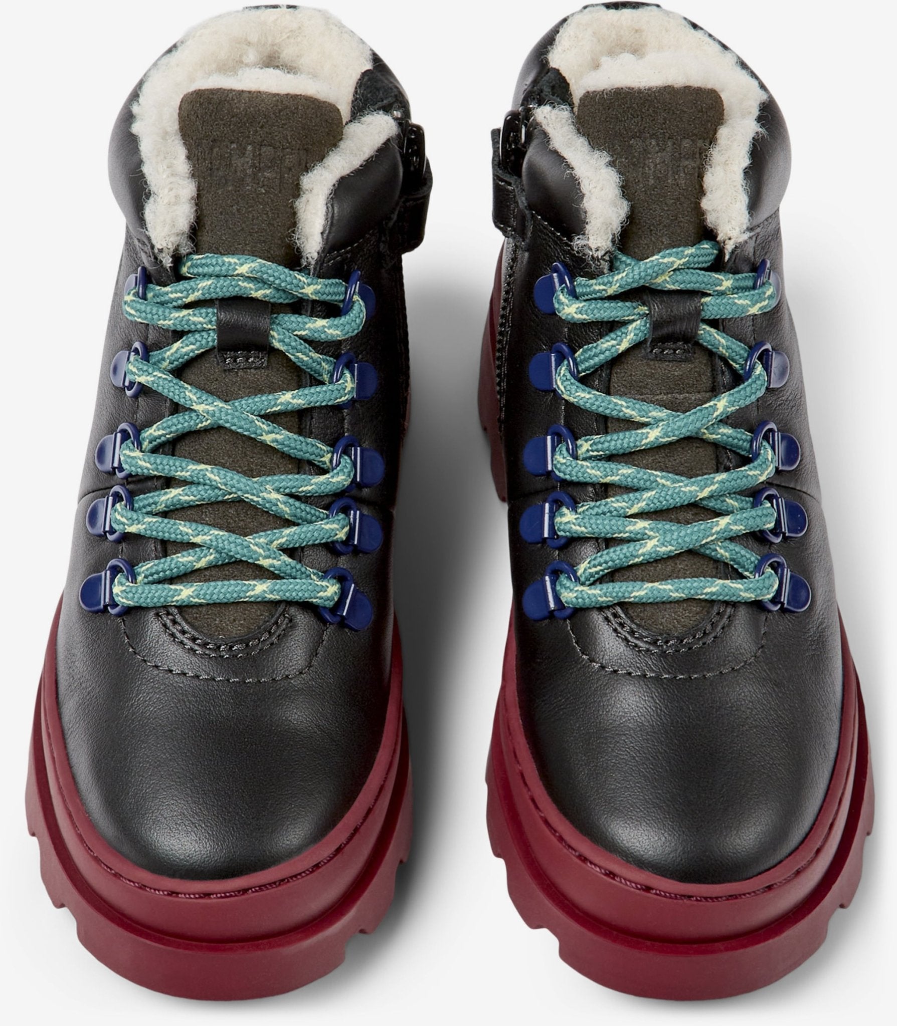 Black leather and nubuck lace-up boots for kids with OrthoLite® footbed and 100% rubber outsoles.