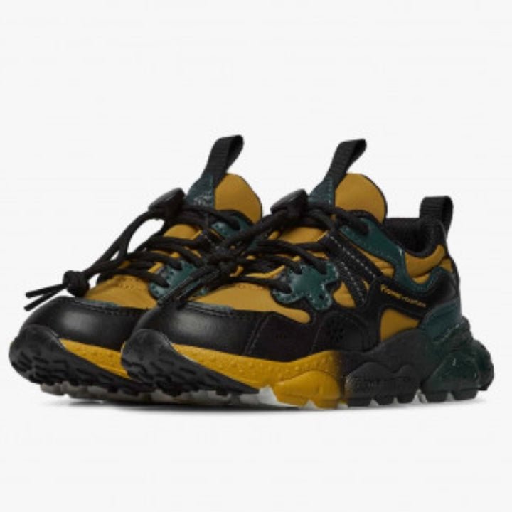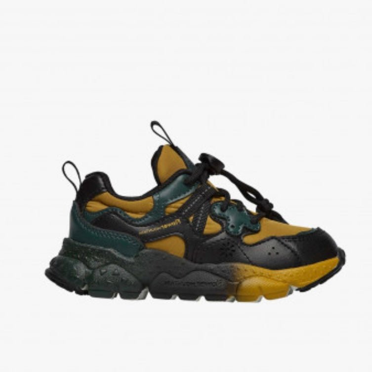 A sporty look yet green soul: the new take on the Yamano Junior sneaker model boasts a vegan-friendly leather and breathable technical fabric upper. The single-pull lace fastening is reminiscent of high-performance models, whilst the construction - which comprises recycled-material linings and a natural cork insole - is testament to the brand’s environmental commitment. Contrasting tread-embellished ultra-lightweight moulded rubber sole.