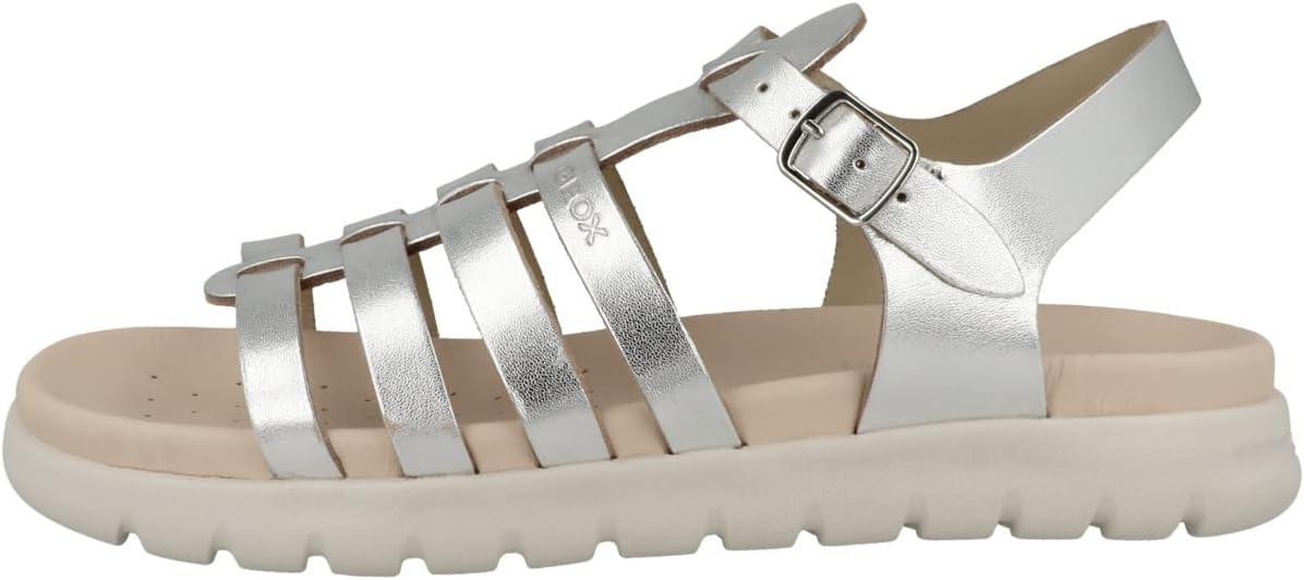 Lightweight flexible open-toe sandal for girls with a contemporary trendy aesthetic. This gleaming silver-tone version of Soleima will lend itself to fine-weather outfits, including formal looks. Striking a balance between femininity and comfort, it has been crafted from metallic leather, set on a cushioning outsole and fastens with an ankle strap.