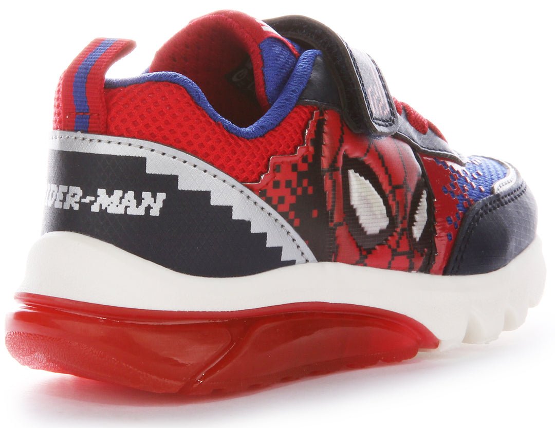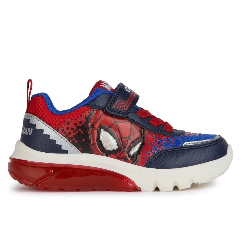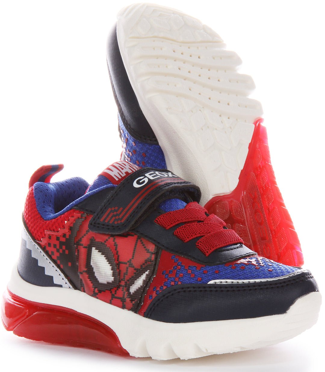 Cushioned and breathable boys’ sneakers with a sporty and dynamic vibe, featuring lights built into the outsole. Shown here in Spiderman blue and red, Ciberdron showcases a bright active-style upper dedicated to the our favorite superheroe. A product of the partnership between Geox and Marvel, Ciberdron is crafted from mesh and a leather-effect material, and is the perfect companion for school days and playtime alike.