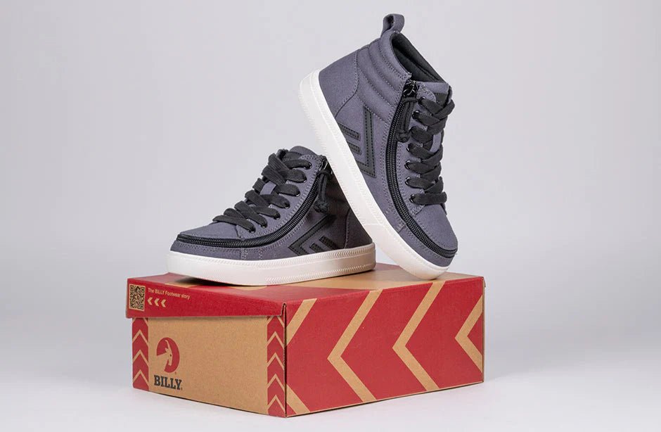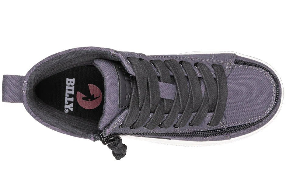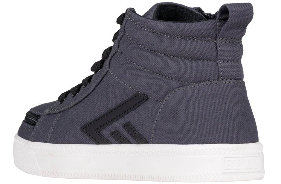 Inspired by a core-skate look, the Charcoal/Black BILLY CS High Tops are sure to deliver. These trending kicks embrace nostalgia, yet remain true to current style. Coming with functional laces for a custom fit, removable insoles for added depth, and a wraparound zipper for unmatched convenience, you’re going to feel good when you Step In!