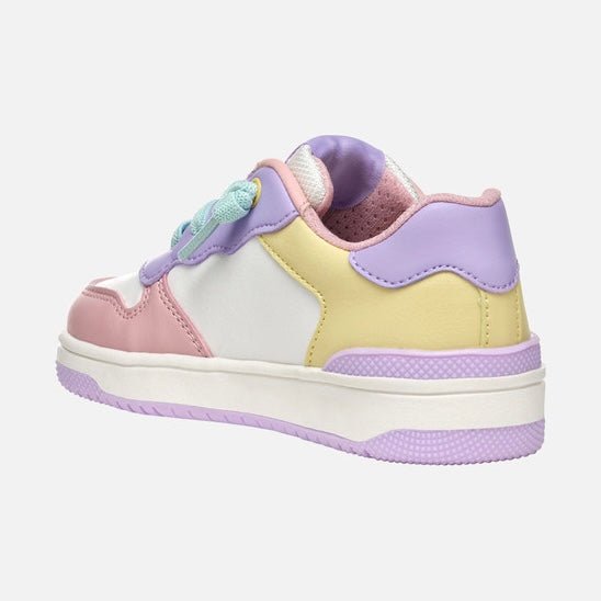 Low-cut junior sneaker with a basketball aesthetic and comfortable breathable design. This on-trend version of Washiba has been cast in a lilac and light-yellow colourway and exudes a vintage vibe. Crafted from nylon and a leather-effect material, it is the perfect way to complete sporty-casual dressing for schooldays or the weekend.